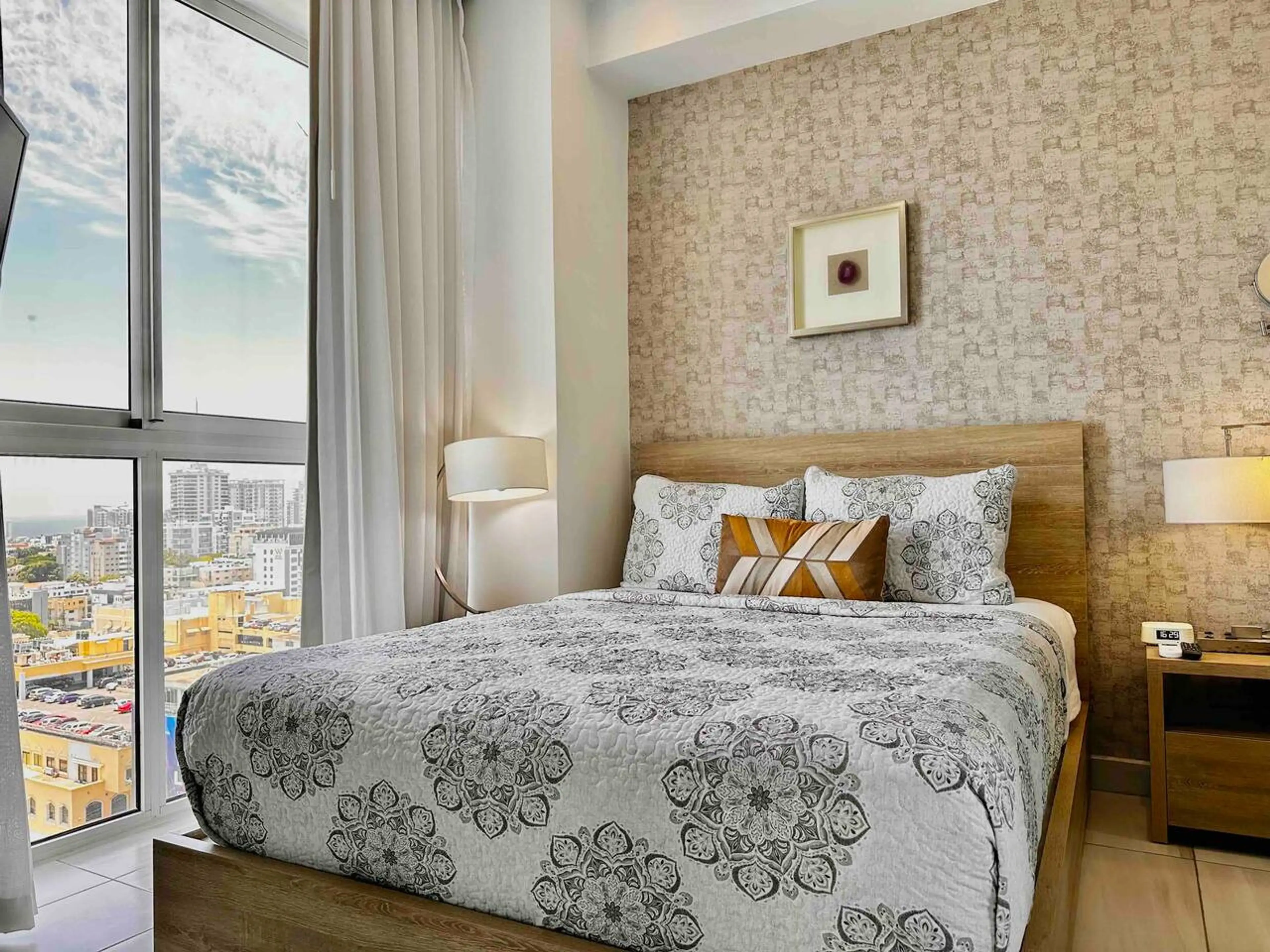 Cozy and elegant Apt in Santo Domingo city center. Located at Lincoln av., near restaurants, supermarkets and shopping malls. You will love this exclusive high floor apartment with amazing views of the city, beautiful, bright, well-furnished and with fully stocked kitchen. Social Area on the roof...