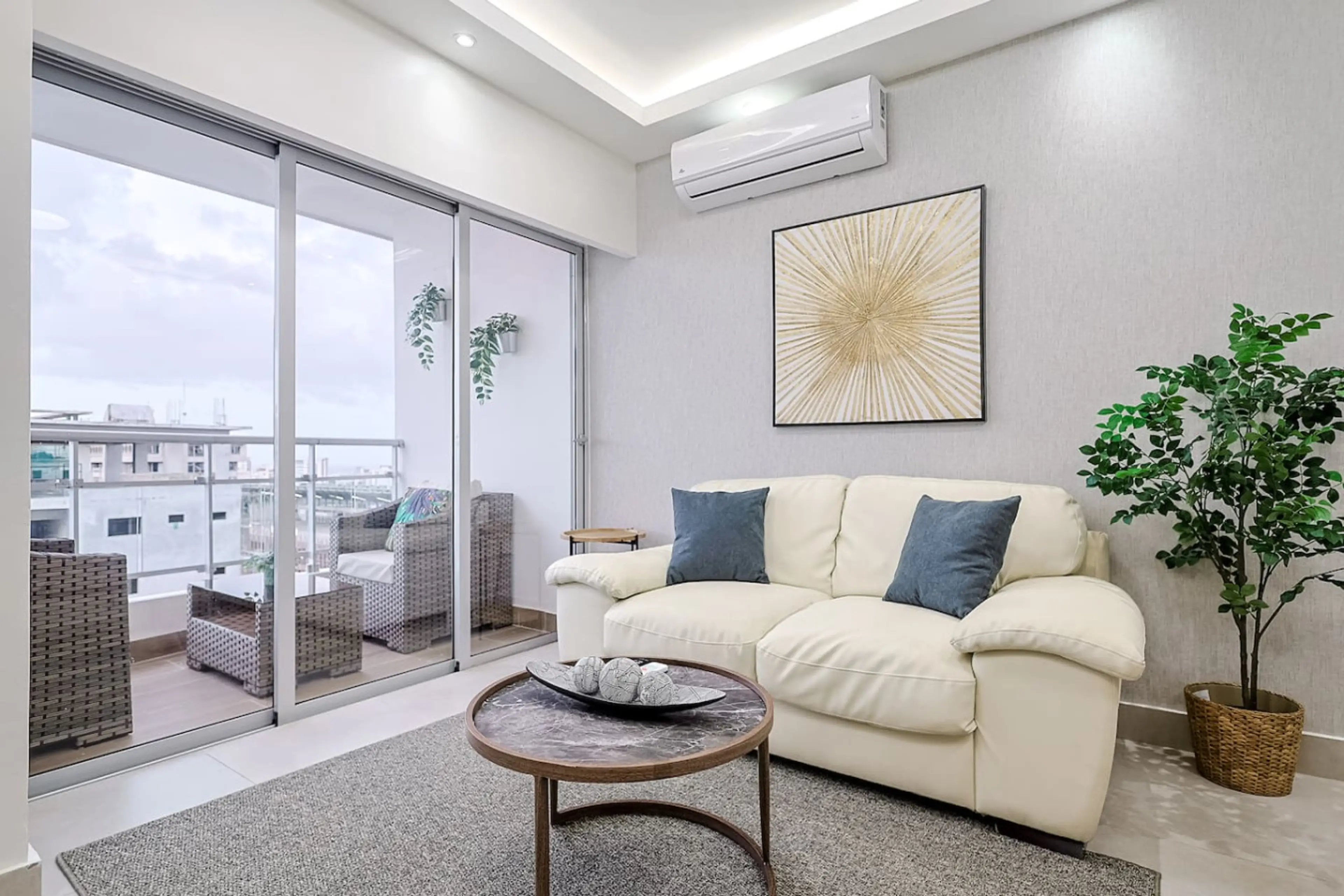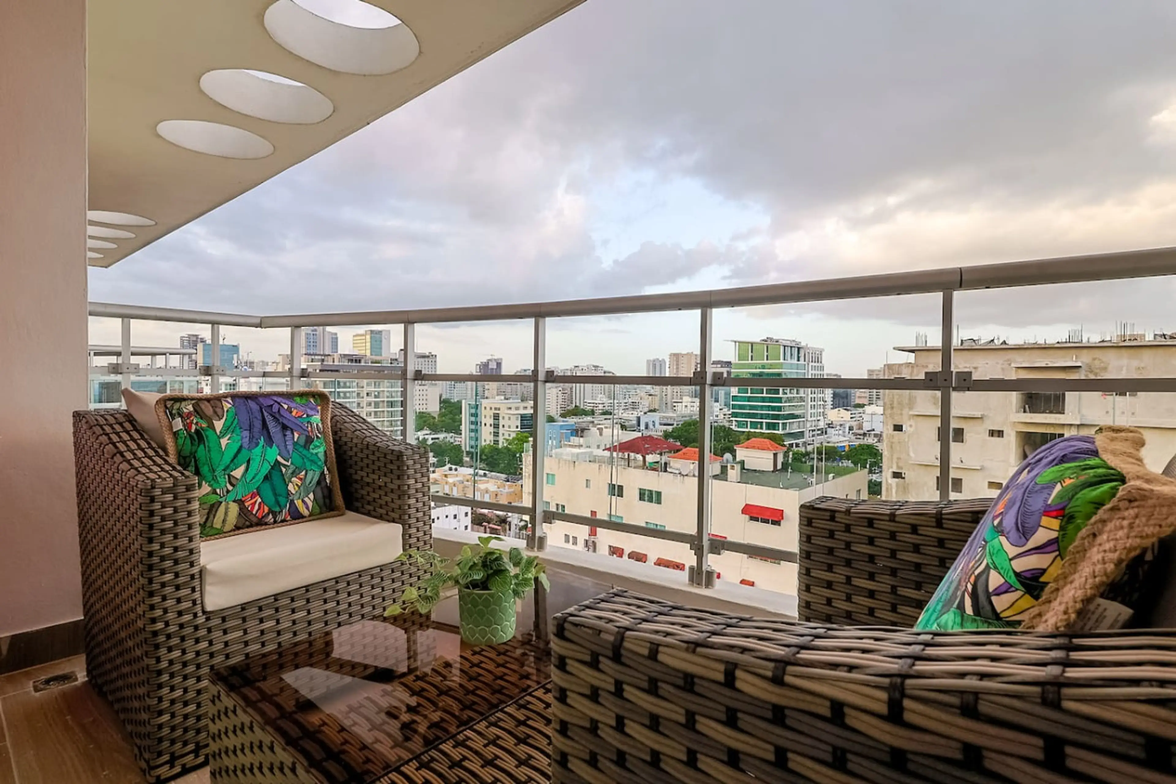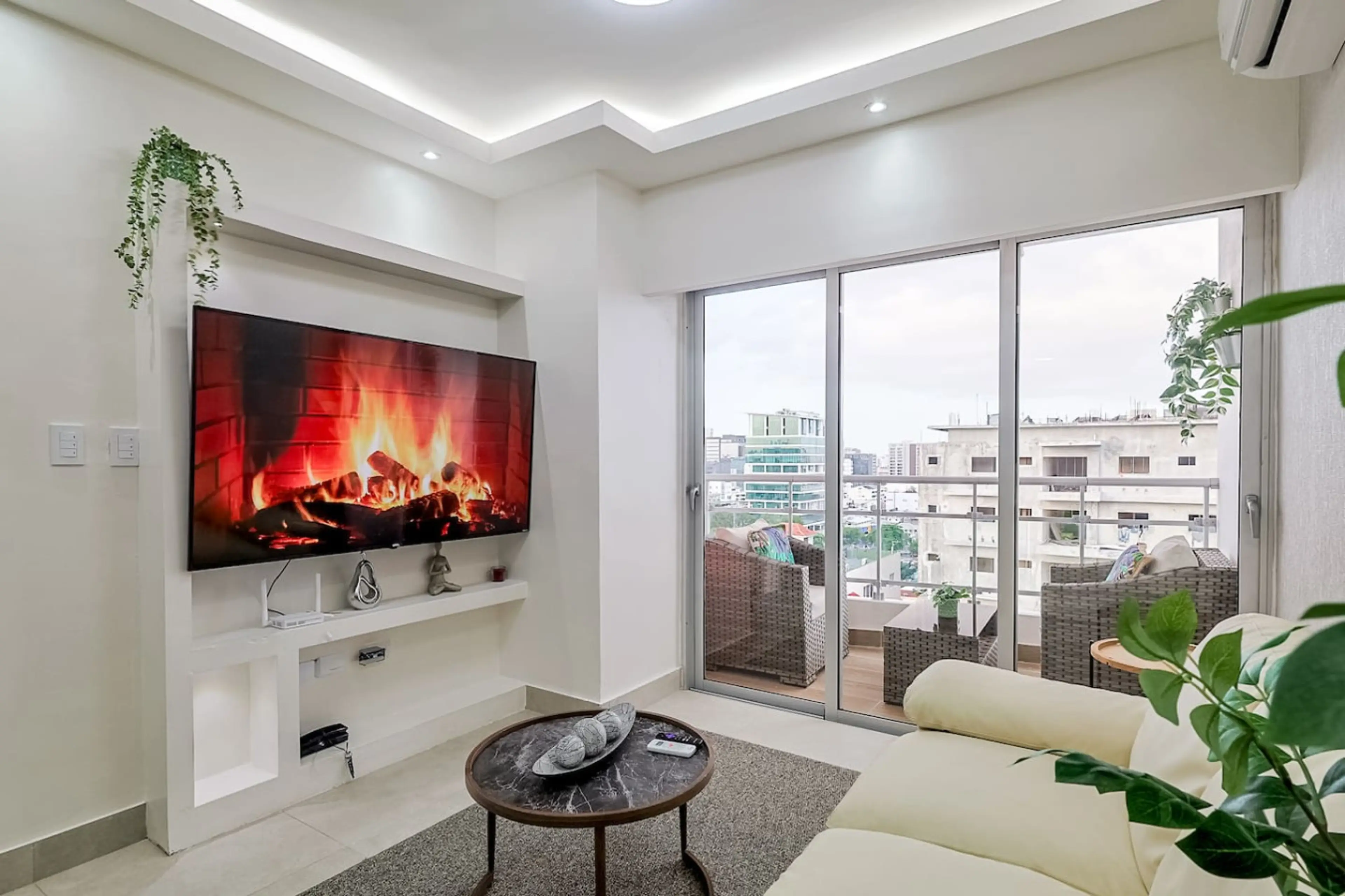 Positive: Todo excelente, las vistas muy buenas es un piso muy alto. El sofá de piel se siente genial es muy comodo. Tiene aire acondicionado y el internet es bueno todo excelente.