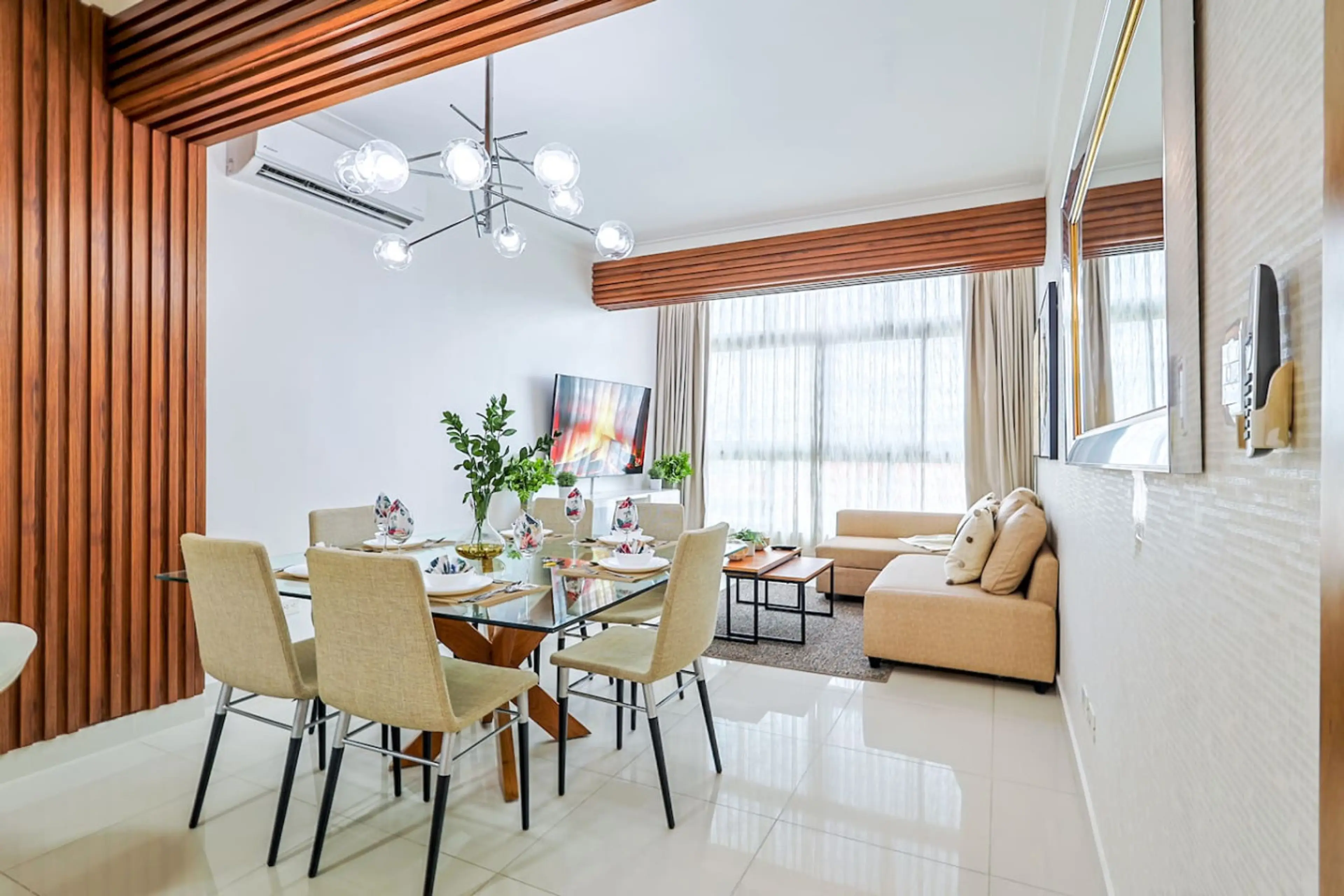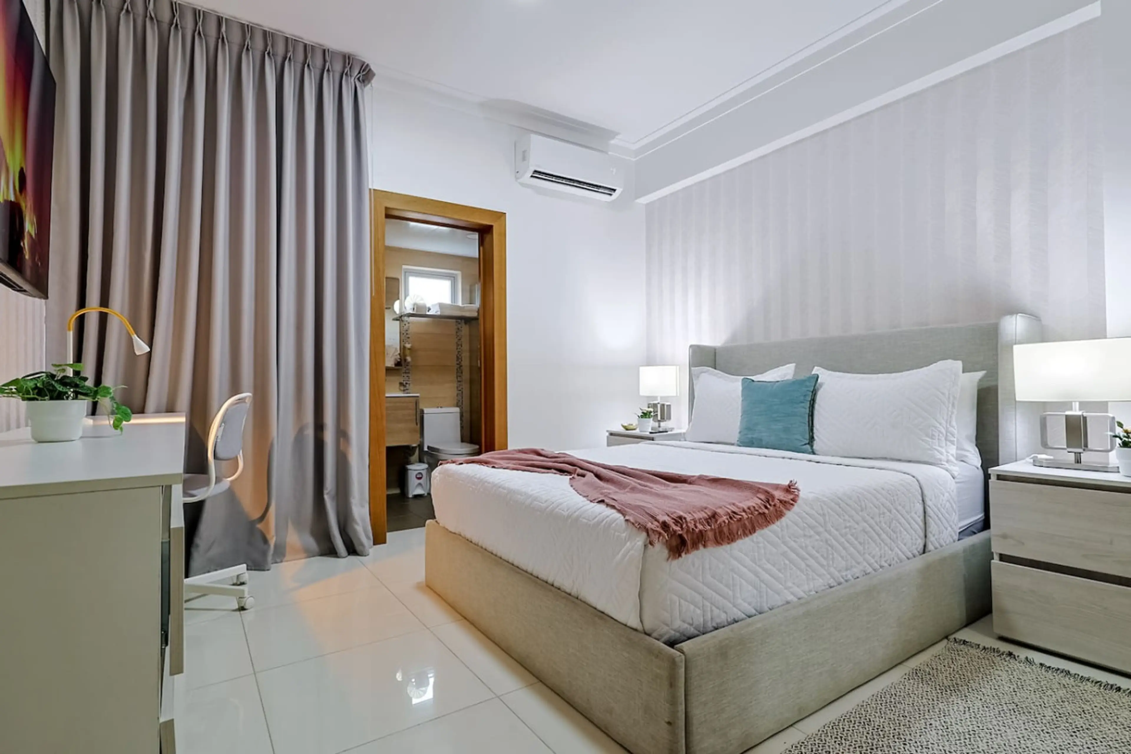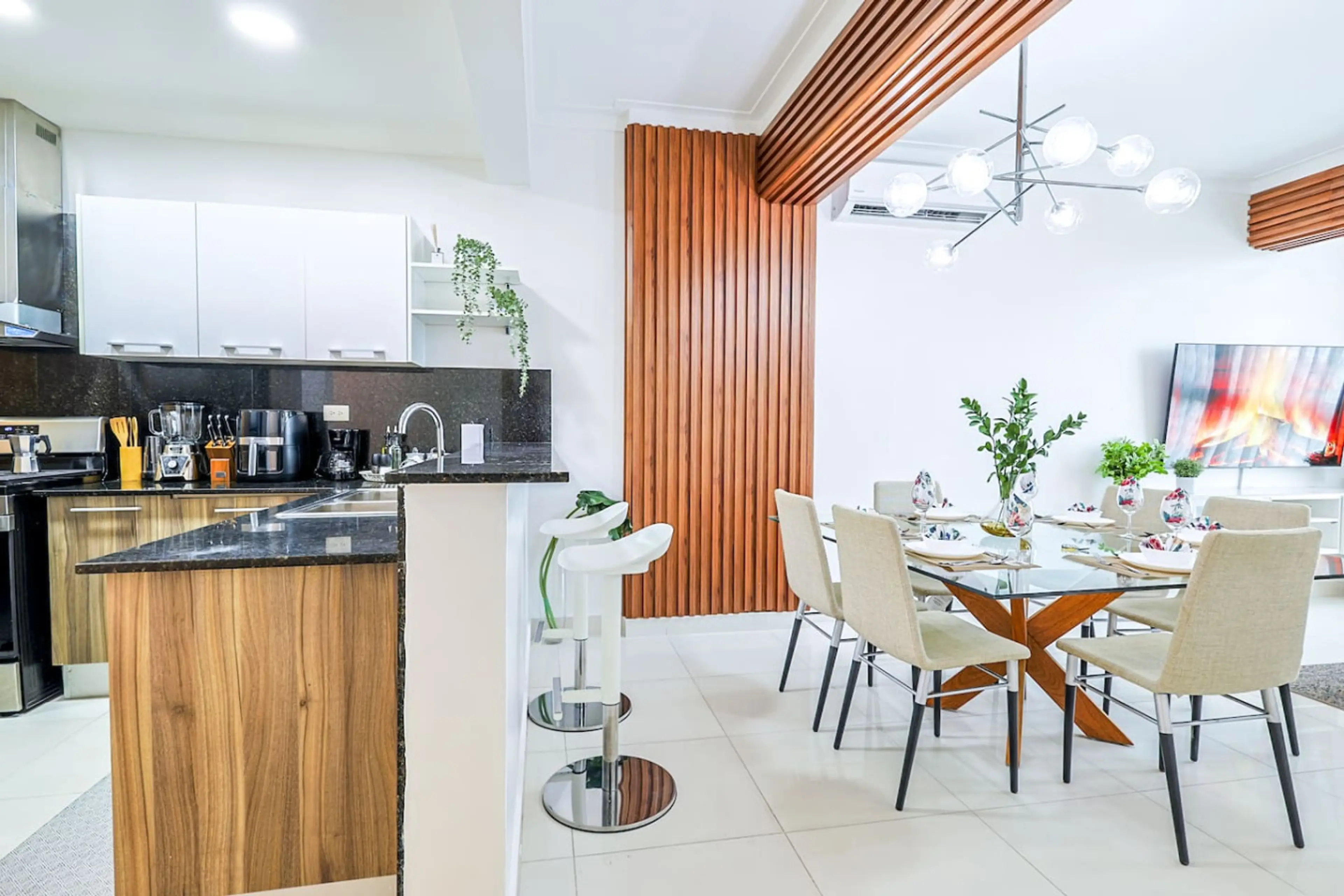 Enjoy your stay with elegance and comfort in this beautiful two-bedroom condo in the city center. The apt offers full AC, fast Wi-Fi, a 60'' smart TV, a fully stocked kitchen, a gym, a meeting room, and a spectacular social area with pool overlooking the city skyline. Located in Bella Vista, this ...