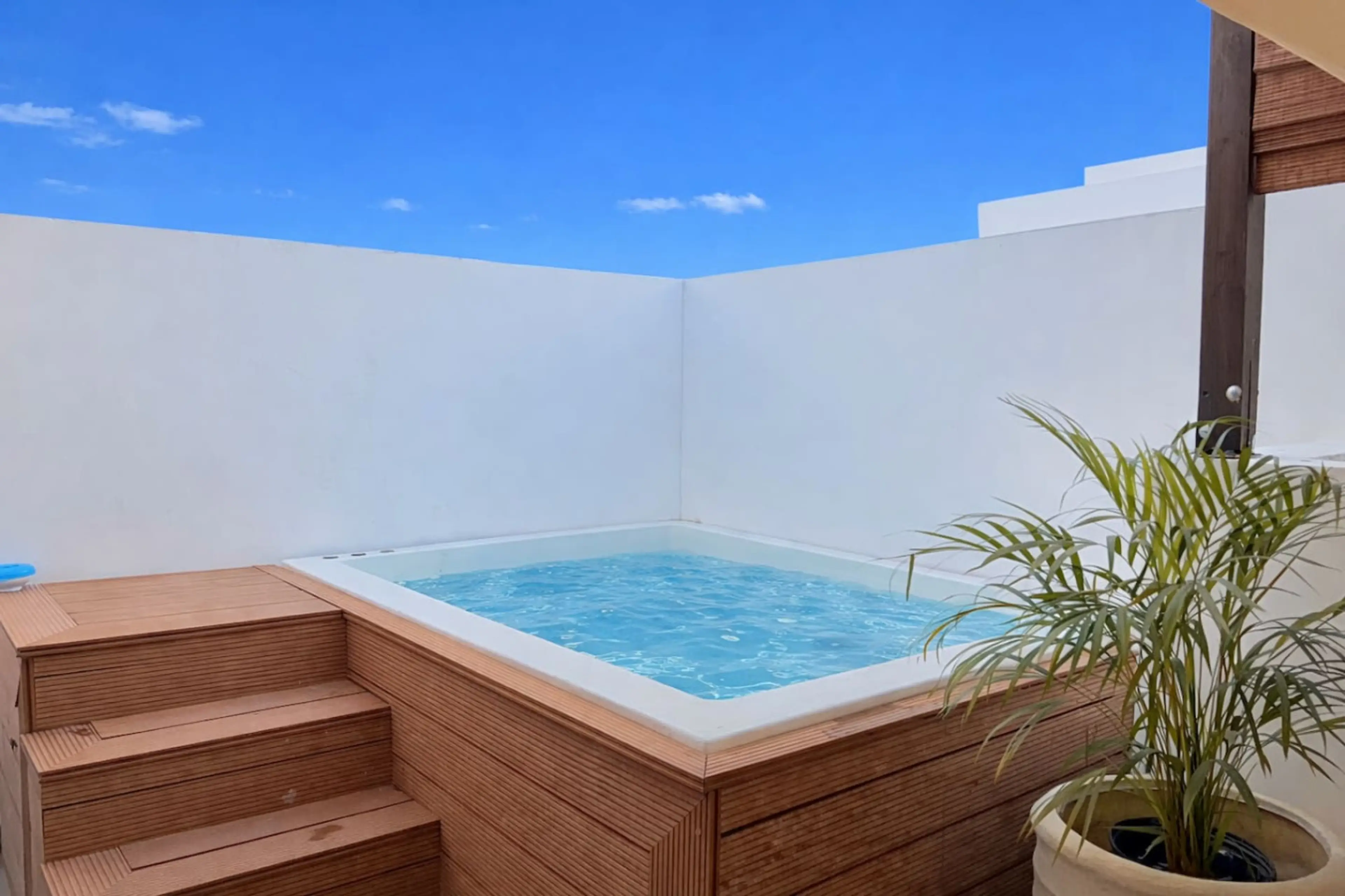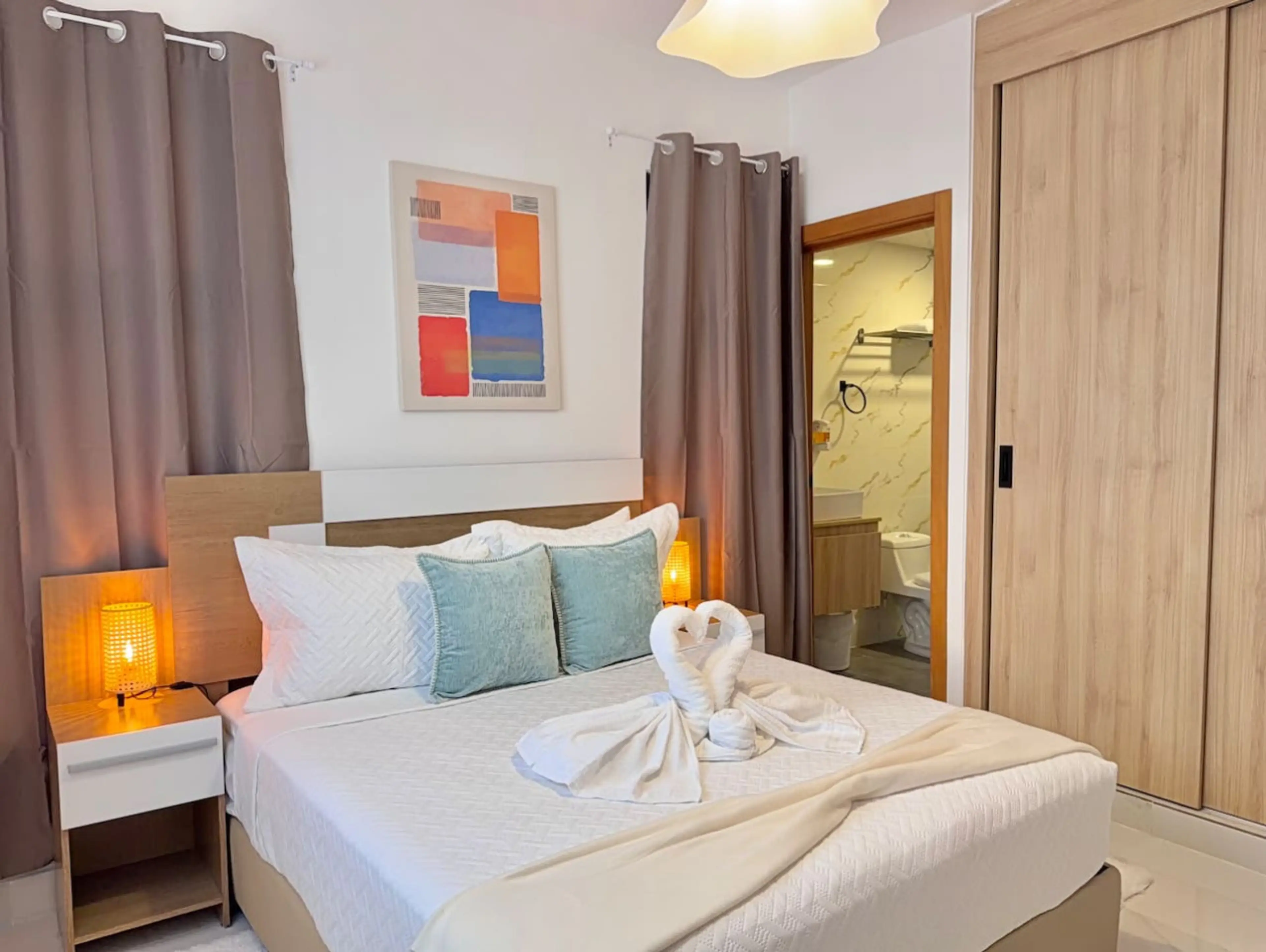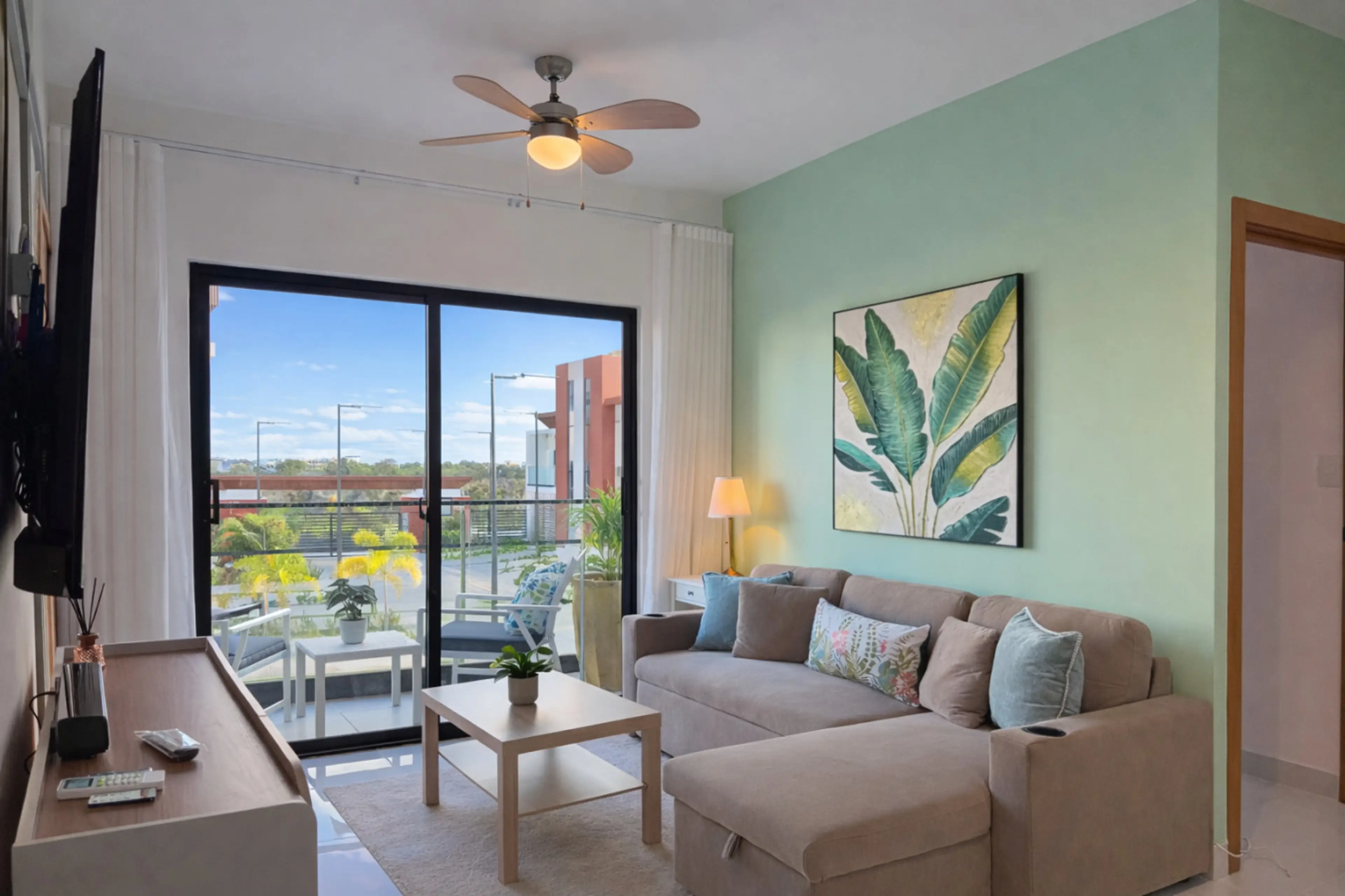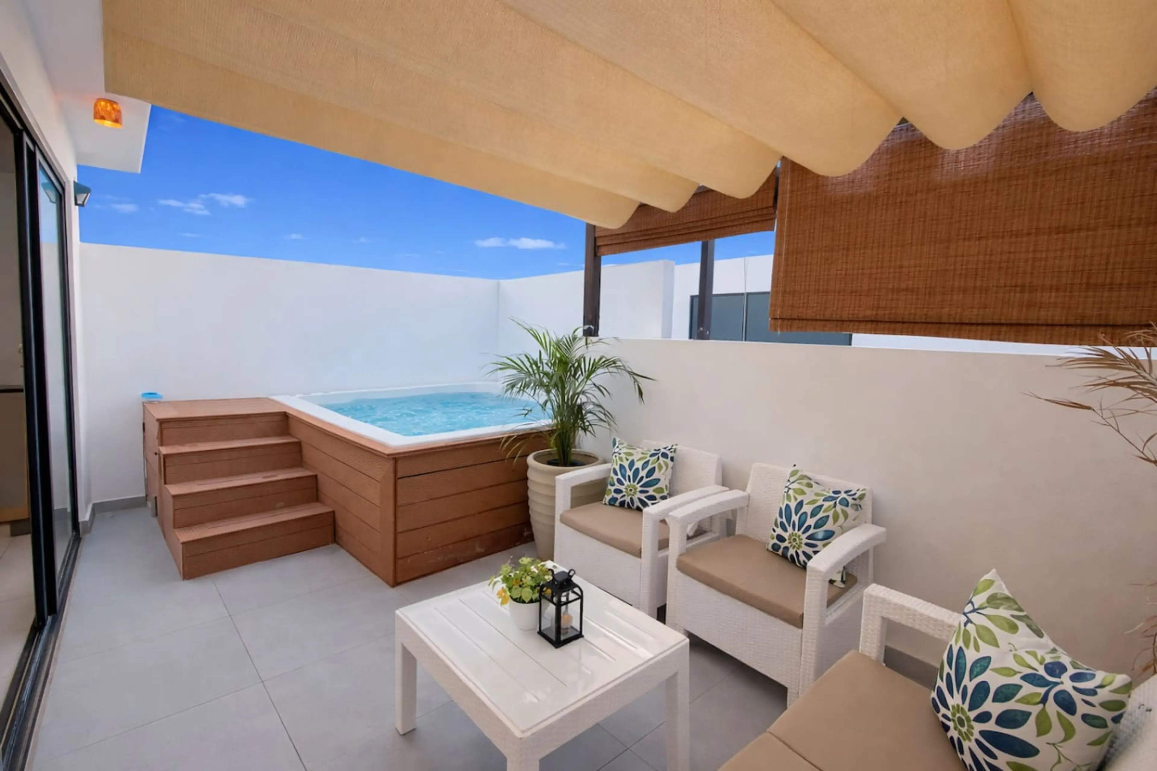 Stylish 2BR townhouse in Costa Cana, Punta Cana w/ private jacuzzi terrace—perfect for families & groups. Prime location just 5 mins to Coco Bongo and 12 mins from the airport. Features open living/dining area, balcony, 2 bedrooms, 2 bathrooms and fully stocked kitchen on the first floor, plus a se...